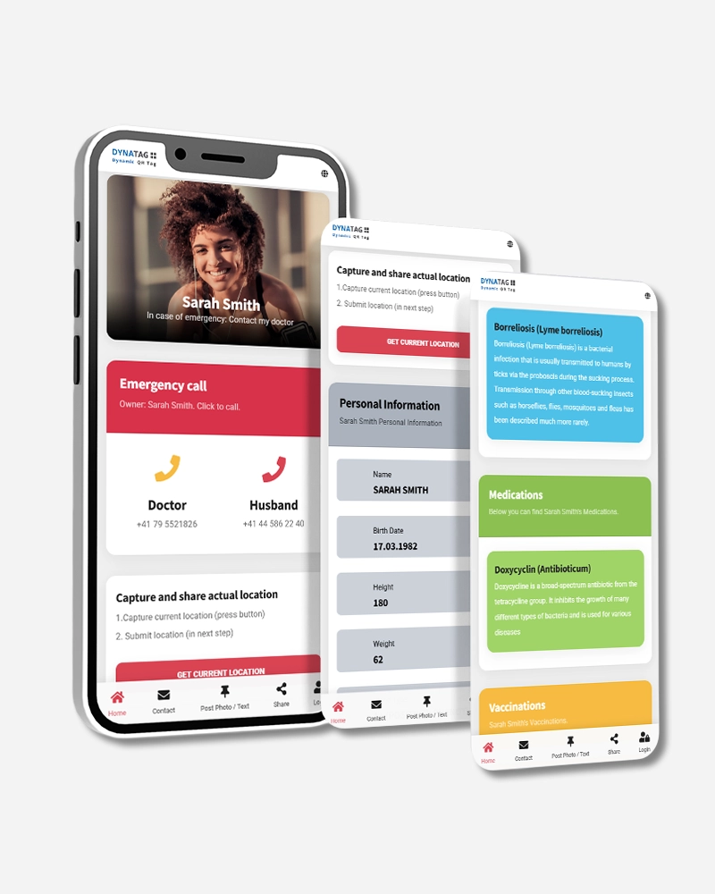 In tegenstelling tot traditionele medische armbanden die beperkte of permanente informatie tonen, bewaart de DynaTag SOS Armband jouw gegevens veilig op een Zwitsers dataplatform. Alleen de informatie die jij kiest om te delen wordt zichtbaar wanneer iemand je armband scant. Zo blijft je privacy beschermd, terwijl hulpverleners direct toegang hebben tot cruciale gegevens in noodsituaties.