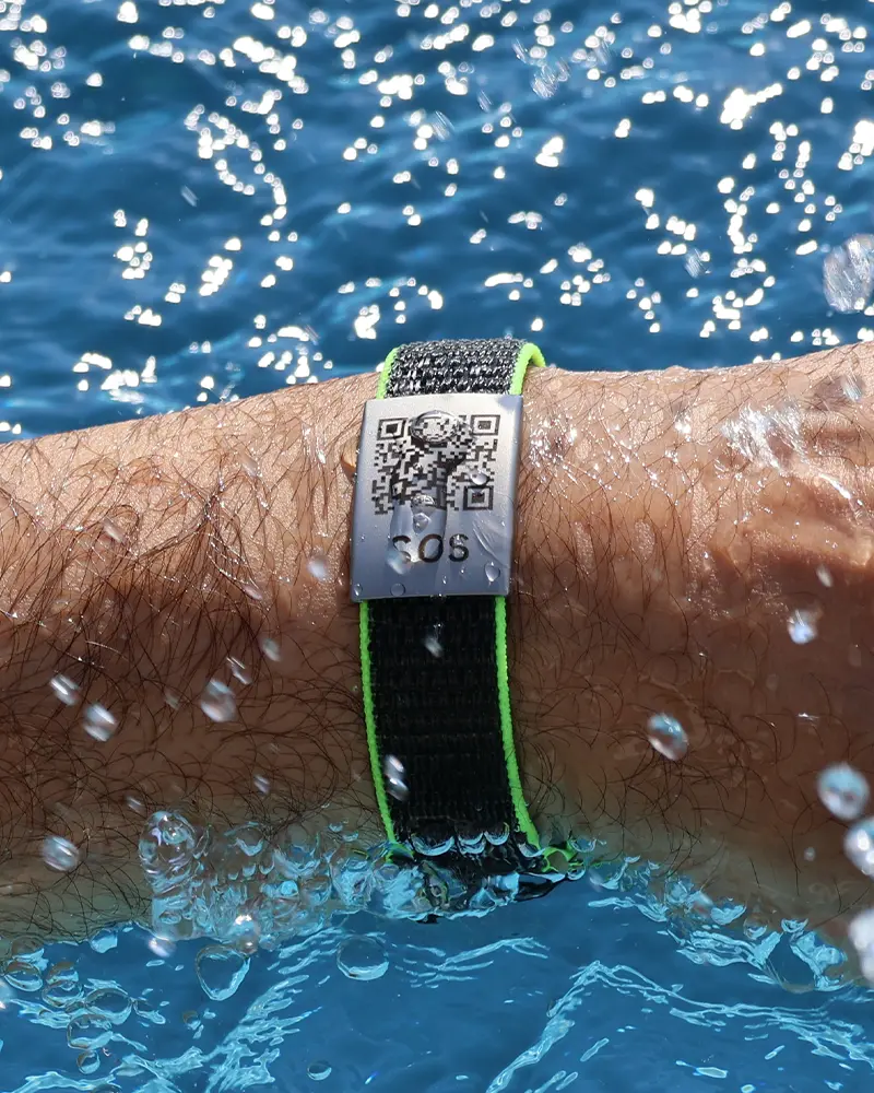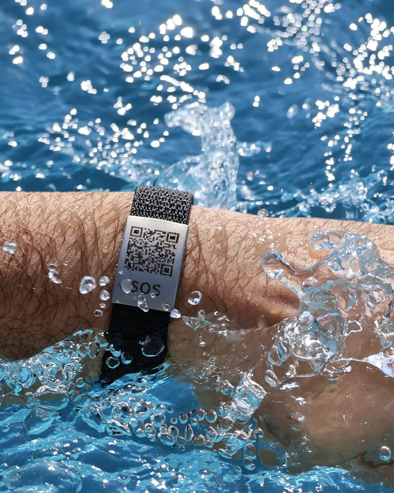 De DynaTag SOS Armband biedt een slimme, veilige en updatebare oplossing. Direct te scannen door hulpverleners, zonder app.